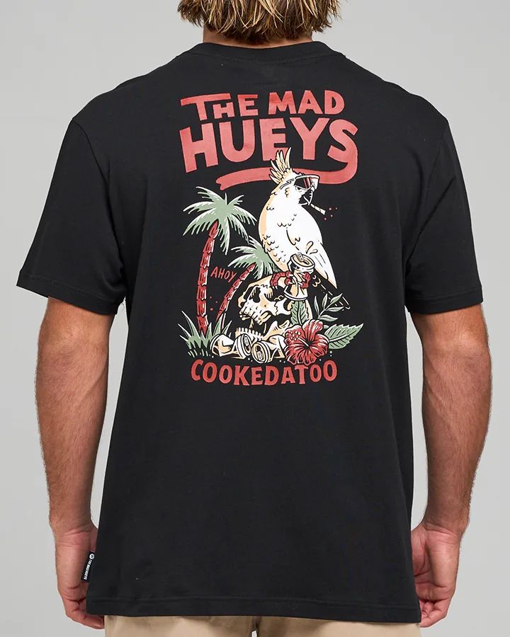 The Mad Hueys Cookedatoo Ahoy Tee is constructed from 100% cotton for breathable, all-day wear. This black tee showcases distinctive front and back graphics that celebrate the adventurous spirit of those who embrace spontaneous moments and refuse to let daylight dictate the fun. Ideal for water outings, social gatherings, or casual hangouts, it's a versatile piece that speaks to anyone with a taste for authentic, unbridled lifestyle expression.