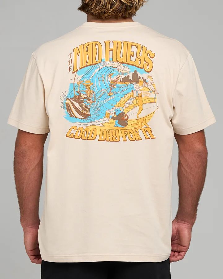 Woven from 100% cotton, this Mad Hueys Good Days Tee delivers exceptional comfort and is ideal for active and casual wear. The front and back print design honours life's cherished moments with striking, memorable artwork that stands out. Built with reinforced seams and quality fabric, it withstands regular washing while maintaining print clarity and colour vibrancy. A reliable wardrobe investment that balances practicality with purposeful, expressive design.