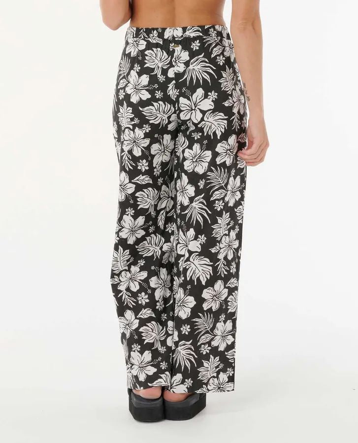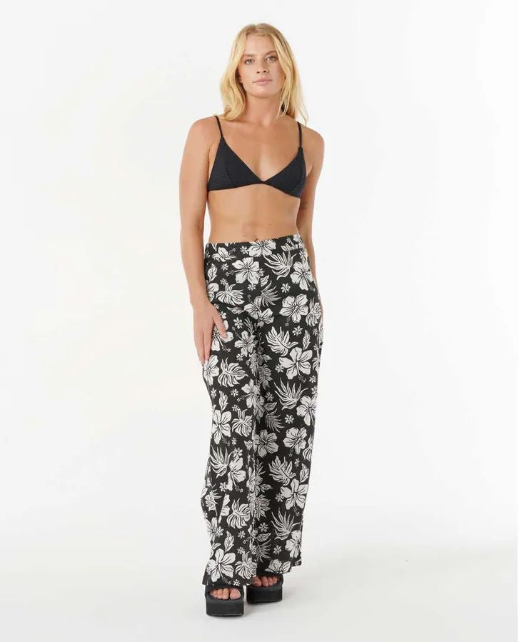 The ladies Rip Curl Keepsakes Beach Pant gives the vacation vibes. The pants are high-waisted with a semi-elastic waist, featuring an all over yardage. The pants are made from a viscose/cotton blended fabrication.