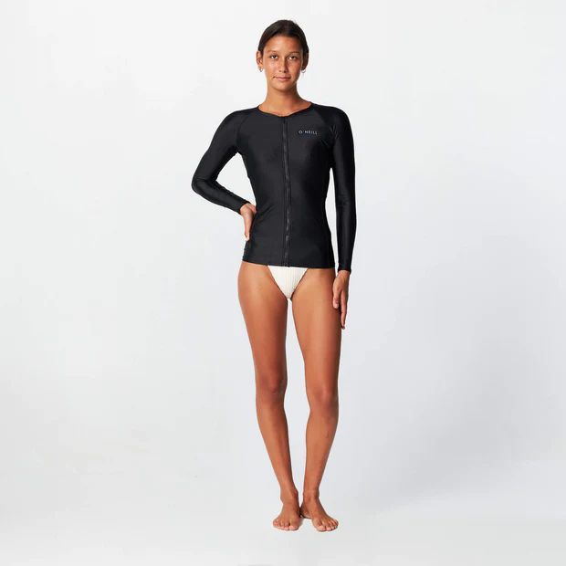 The O'Neill Ladies Bahia Full Zip Long Sleeve Rash Vest seamlessly blends style and function. The rash vest is made from Mipan recycled polyester and is UPF 50+ sun protected, allowing you to enjoy the beautiful sunshine and beaches.