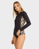 The Billabong Ladies Dark Wave Half Zip Long Sleeve Rashie is perfect for the beach. The rashie is made from a recycled nylon/elastane material and features a 1/4 zip on the front. The rashie is rated UPF50+.