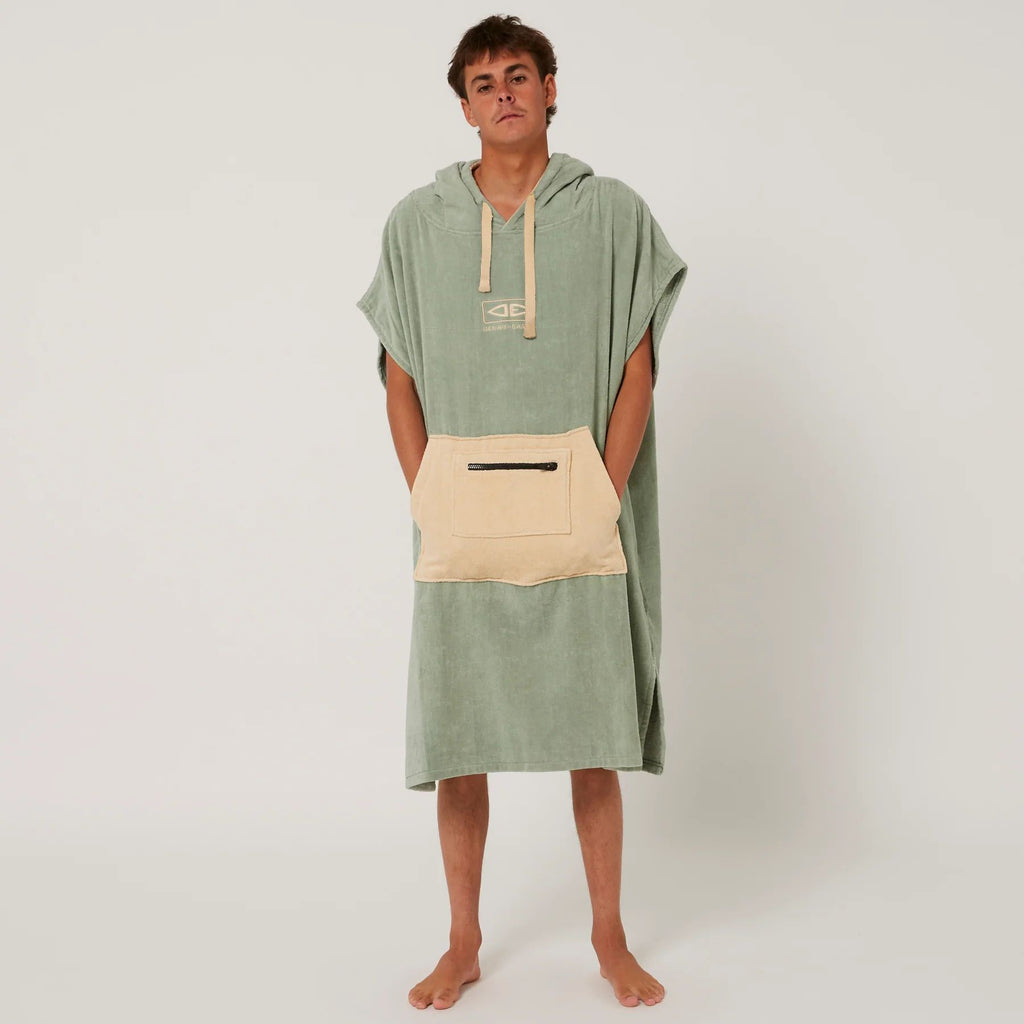 The Mens Daybreak Hooded Poncho Towel is perfect for drying off and changing out of your wetsuit or swimwear. With oversize sleeve openings, zip patch pocket and in 340GSM comfy cotton velour, this is an easy poncho that you can slip in and out of after a day at the beach. 100cm in length.