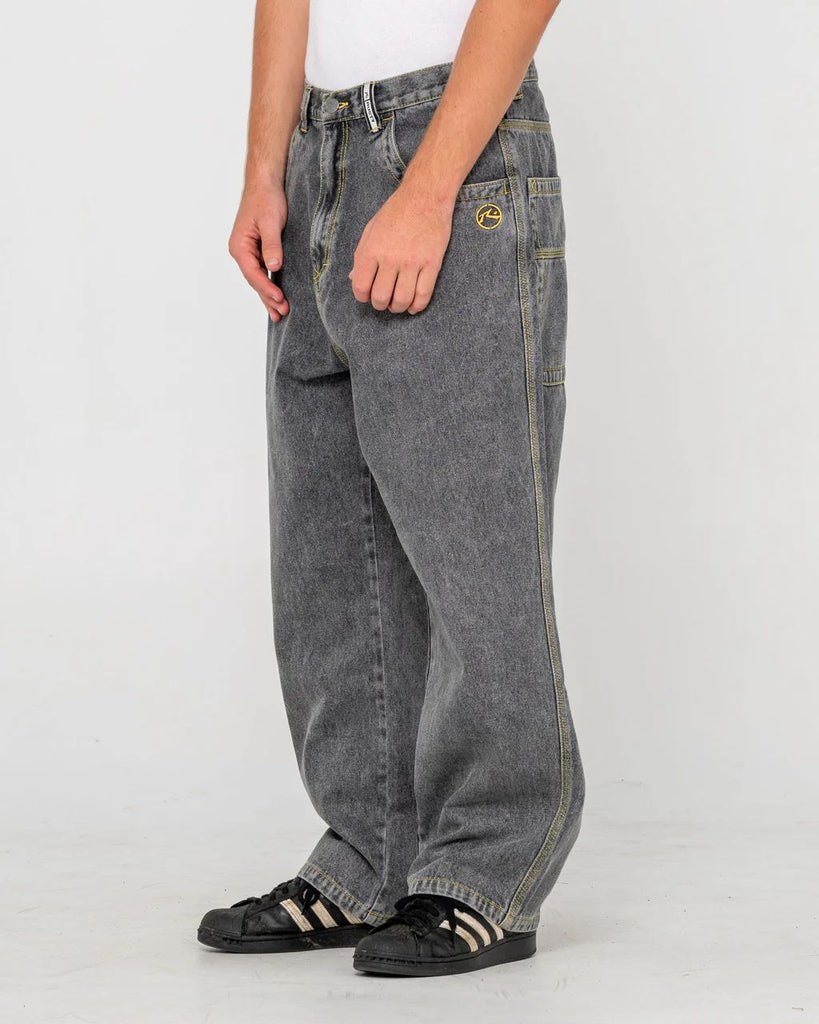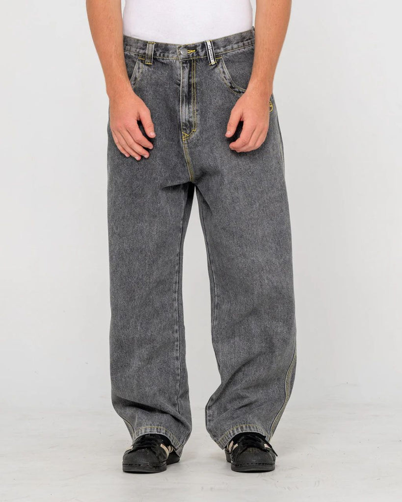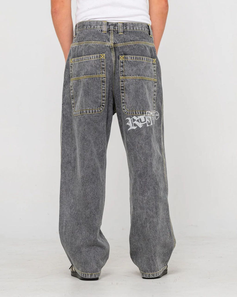 The Rusty Redemption Baggy Jean embraces effortless style, crafted from premium 100% cotton indigo denim. Featuring a relaxed baggy fit that's perfect for laid-back vibes, these jeans showcase bold contrast stitching and the iconic Rusty Ransom screen print for authentic character. Oversized pockets provide practical storage, while intricate embroidery details add visual interest. A versatile wardrobe essential that delivers comfort without compromising on edge.