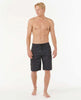 The Rip Curl Shock Wave Boardshort features a regular fit made from 100% recycled polyester Ripsuede, combining durability with sustainable materials. Its 21" outseam and woven construction provide reliable comfort and shape retention. Treated with a DWR water-repellent finish and hydrophobic quick-dry technology, these boardshorts ensure rapid drying and enhanced water resistance. Designed with an all-over yardage print, screen-printed logo, and a secure side pocket with flap for storage, they deliver both style and practicality. Responsibly sourced and crafted from recycled PET, they reflect a commitment to eco-friendly performance wear.
