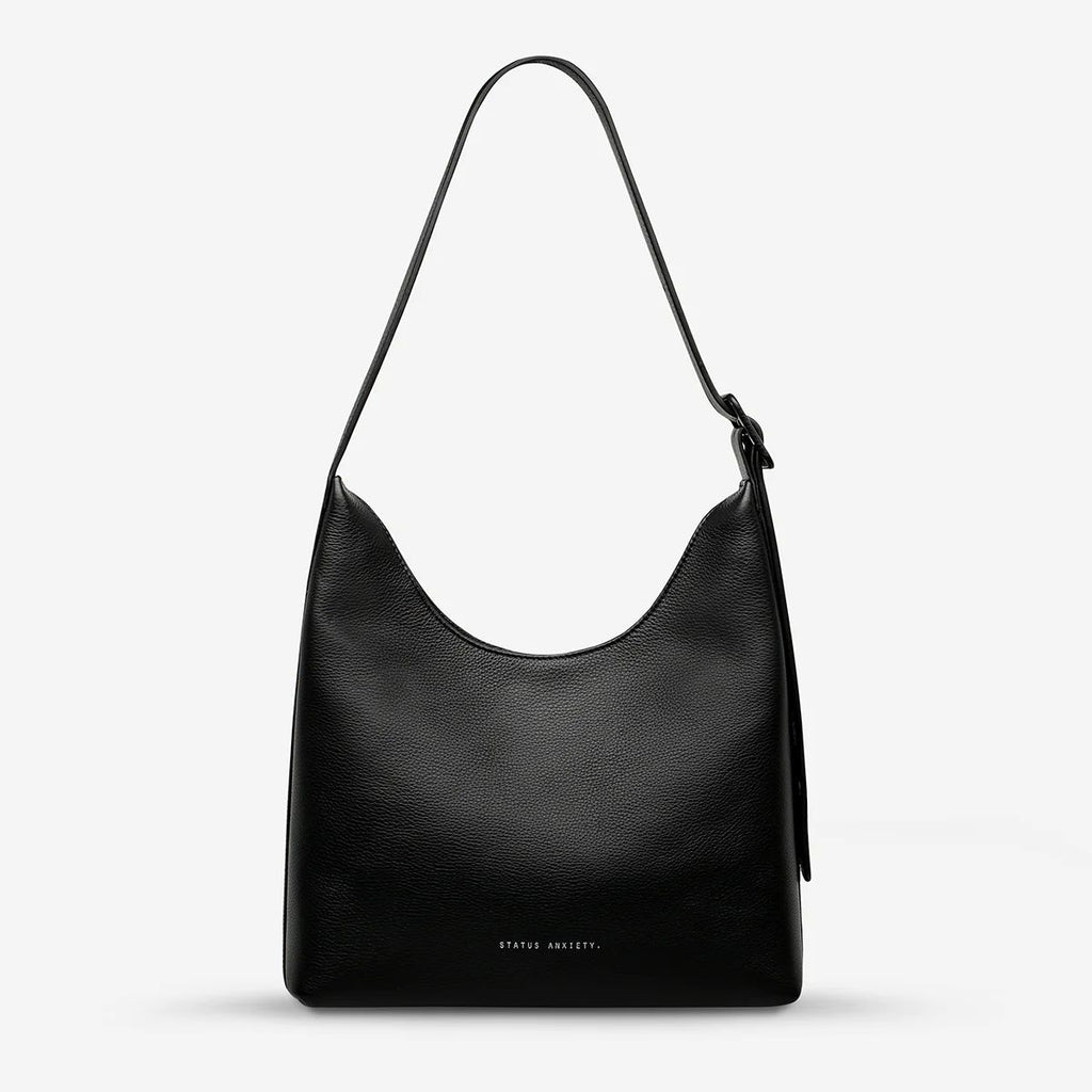 The Status Anxiety Take you Higher Bag is the new larger bag style for the year. The bag is made from a soft shrunken pebble leather and features a magnet closure, internal zip pocket and adjustable shoulder strap.