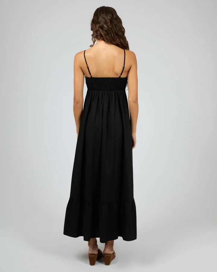 The Silent Theory Tallow Tiered Maxi Dress combines comfort with refined elegance through its carefully balanced linen-viscose blend. Adjustable straps allow a customized fit, while strategic shirring at the back bodice creates a flattering silhouette. The cascading tiered hemline adds movement and visual interest, making this piece versatile enough for casual summer outings or elevated occasions. Crafted from 40% linen, 40% viscose, and 20% cotton, the fabric offers breathability and structure without sacrificing softness. An essential wardrobe staple that transitions effortlessly from day to evening.