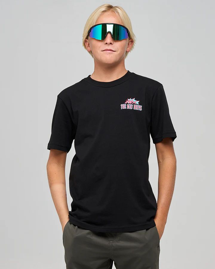 The Mad Hueys Youth Boys Good Life Hueys SS Tee is for the kid who loves a loud tee. The tee is made from cotton and features a large back print and small chest print.