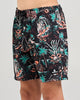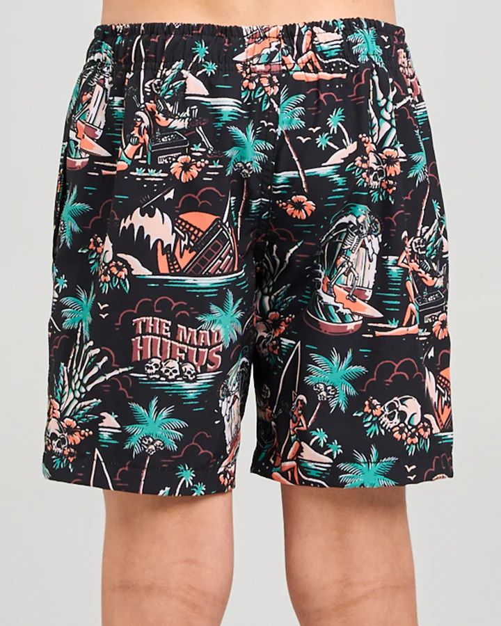 The Mad Hueys Youth Boys She'll Be Right Volley is crafted from 4-way stretch quick-dry fabric, ensuring unrestricted movement and rapid drying after water activities. It features an elastic waist with a drawcord for a secure, adjustable fit, and a 16" leg length that provides balanced coverage and comfort. The all-over custom print adds a distinctive look, while finished side pockets offer practical storage for small essentials. Designed with functionality and style in mind, this volley meets the demands of active young surfers.