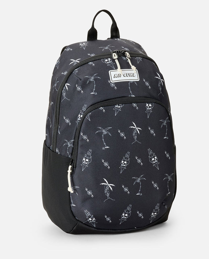 Ozone 30L School 2026 Backpack combines surf style with functionality, featuring laptop section, large main compartment, multiple organizer pockets, and drink bottle pocket for daily use. The backpack measures at 49CM x 32CM x 22CM.