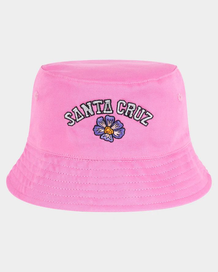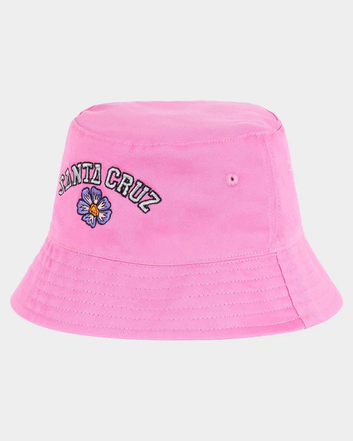 The Santa Cruz Youth Girls Field Arch Repeat Reversible Bucket Hat is for the girl who loves a Santa Cruz hat. The hat is made from cotton and features a plain side with embroidered logo and the other side is printed all over.