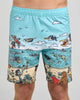 The Mad Hueys Oz Straya 18 Swim Volley combines performance and style with its 92% polyester and 8% elastane construction, featuring four-way stretch quick-dry fabric for superior movement and comfort. Its 18-inch length and elastic waistband with drawcord ensure a secure, tailored fit. Showcasing a true blue Australiana-inspired landscape print, these shorts stand out while maintaining durability through no side seams. A back right patch pocket adds functional detail to this expertly designed swim volley.
