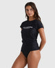 The Billabong Ladies Society Short Sleeve Sunshirt is a favourite every season. The rashie is made from recycled polyester and is UPF 50+ rated.