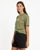 The Volcom Dial Crop Tee delivers understated style with practical construction. Featuring a comfortable short sleeve cut and reinforced rib neckband for durability, this tee is finished with interior striped neck taping for added comfort against the skin. Bold screenprint graphics at the pocket and back create visual interest while maintaining a refined aesthetic. Perfect for layering or wearing solo, it's a versatile staple for any wardrobe.