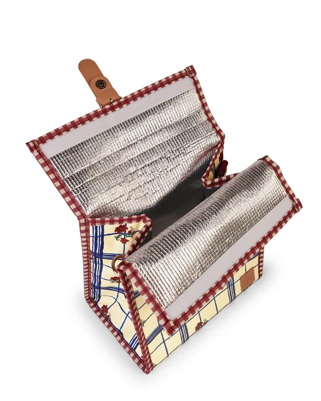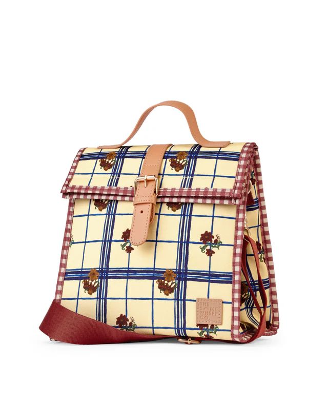 The Somewhere Co Meadow Lunch Satchel is a favourite lunch box style in store. The lunch satchel is made from polyester canvas and features an insulated inside, with the satchel measuring at 24CM X 25CM X 14CM. The satchel comes with an adjustable vegan leather strap and velcro closure.
