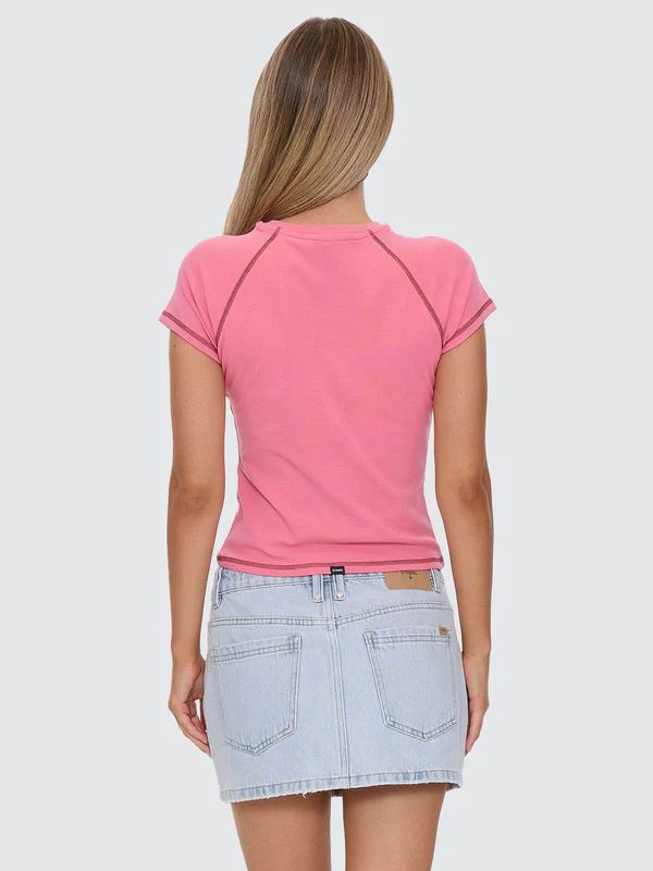 The Thrills Track Record Raglan Club Tee blends sporty lines with raglan sleeves and contrast top stitching on a slim, body-skimming silhouette. Cut from fine-rib cotton with a touch of elastane, the tee is designed to hug comfortably, holding its shape and bringing a sturdy, premium feel. The front chest print nods to race-day graphics without stealing the show.