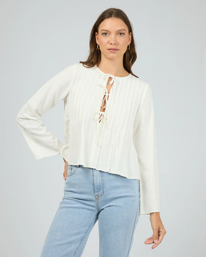 The All About Eve Hudson Shirt is a classic smock-style front tie top with pleated detailing along front and back. The Shirt is made from a viscose/linen blended material.