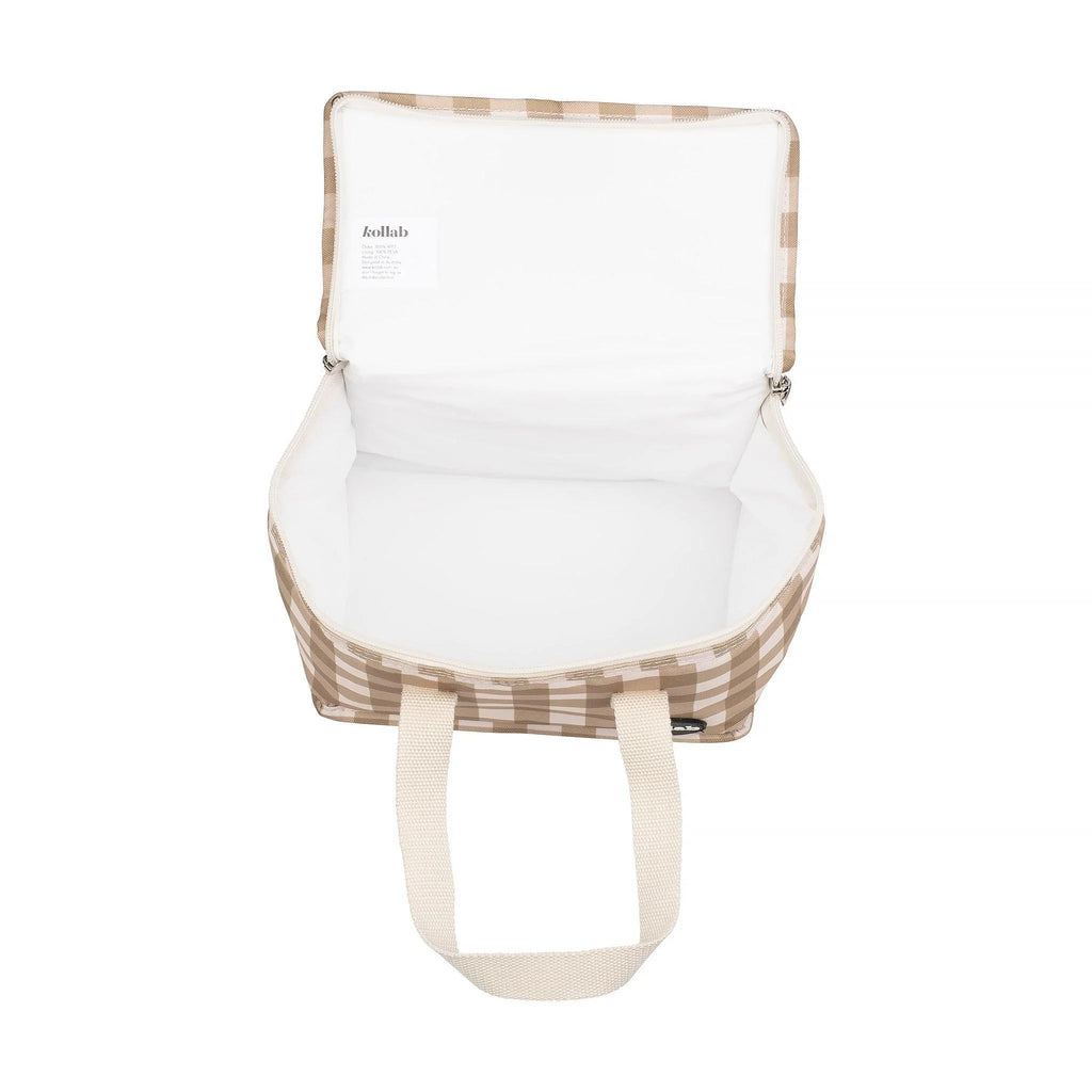 The Kollab Lunch Box Olive Check combines practical design with reliable performance for your daily routine. Its premium padded insulation maintains optimal temperature throughout the day, whether you're managing school schedules, office commitments, or weekend adventures. The compact dimensions (22cm L × 17.5cm H × 14.5cm D) slide effortlessly onto standard fridge shelves, maximizing your storage space. Reinforced handles distribute weight evenly for comfortable carrying, even when fully loaded. Built to withstand regular use, this lunch box delivers consistent freshness where it matters most.