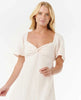 Airy and effortless, this mini dress features delicate embroidery, a semi-elastic waist for shape, and a front keyhole detail. Made from breathable linen-viscose slub with a garment wash for lived-in softness.