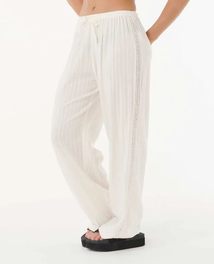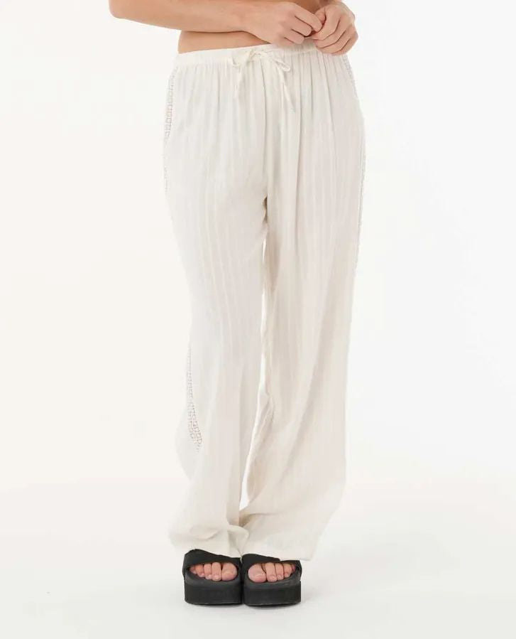 The Pacific Rider Pants combine cotton dobby with garment wash softness. Crochet trim and metal logo details give these pants a laid-back surf vibe, making them the perfect everyday piece for chilling after a session or casual weekend hangs.