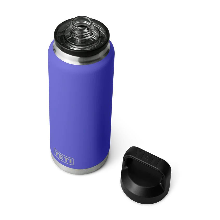 The Yeti Rambler 36oz/1065ml Bottle w/Chug Cap is designed for a life in the wild. Scorching days on the ranch and keeping you hydrated through rugged terrain are this bottle’s calling, second only to keeping your drinks icy cold. For easy cleaning and use day after day, this reusable bottle is dishwasher safe. Under the cap, the bottle’s got a wide mouth for easy cleaning and filling with ice. Find a colour that calls to you — this big bottle is available in stainless and DuraCoat™ colours.