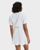 The ROXY Zenith Wrap Solid Dress features a short-length design crafted from a breathable blend of 60% cotton and 40% viscose at 150gsm, combining comfort and durability. Its wrap fit with an elasticated waist provides a flattering silhouette, while flutter sleeves add a touch of elegance. The ruffled hemline, made from the same fabric, enhances movement and feminine charm, making it a versatile choice for both casual and dressier occasions.
